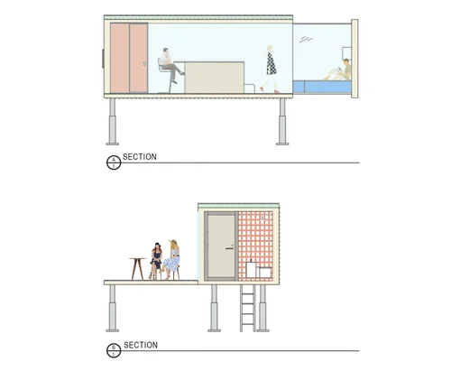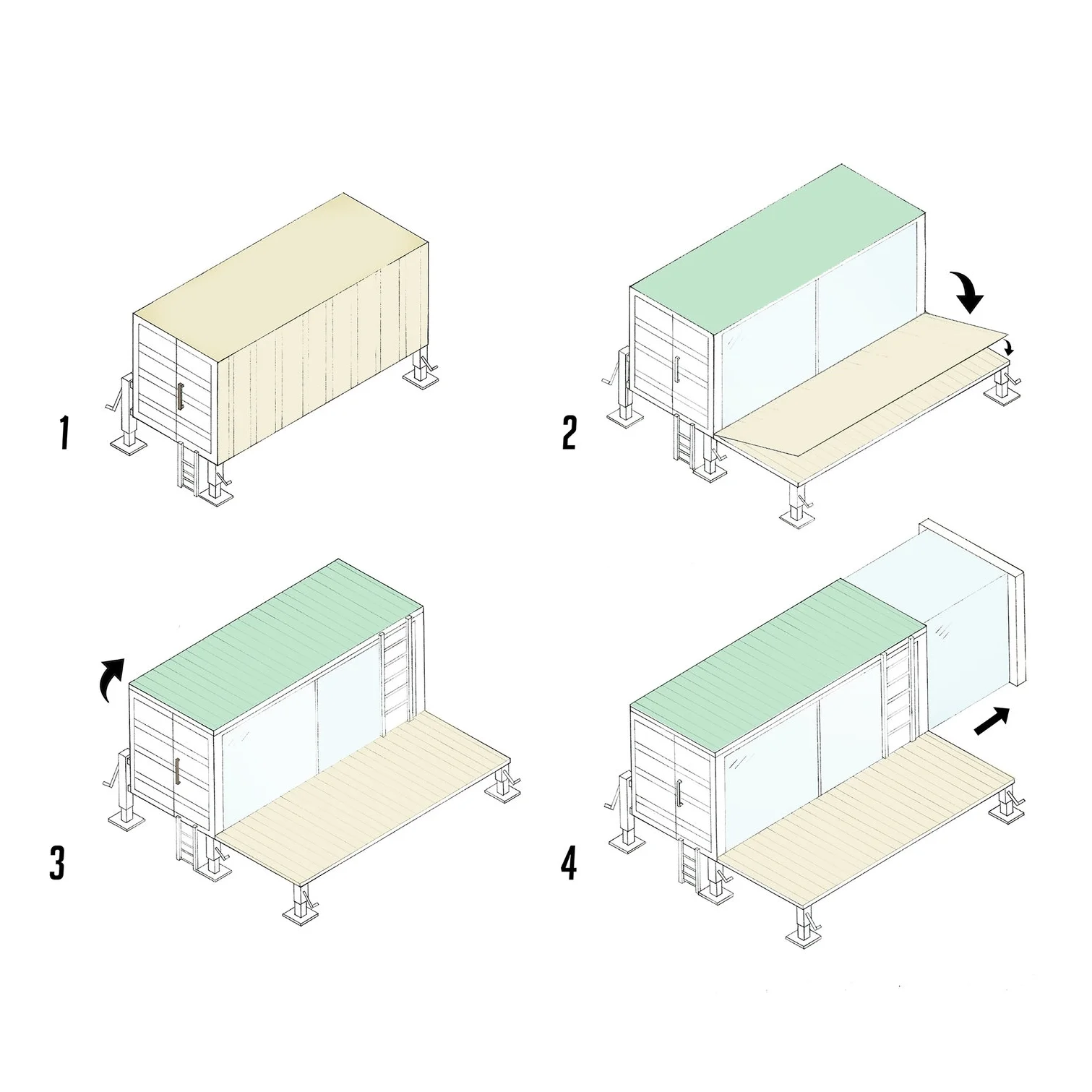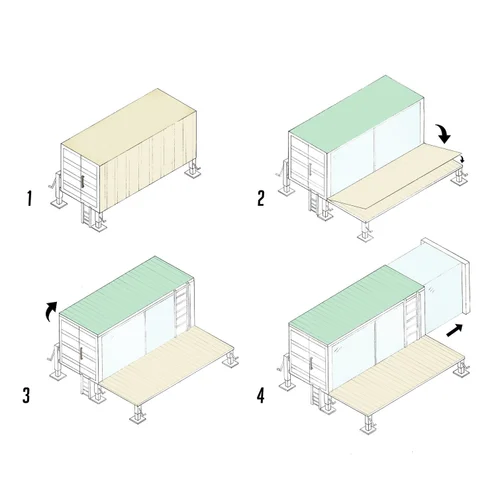 The Mobile Timeshare is meant for the modern day nomad, one who's eager in traveling to remote locations while experiencing a compact minimalistic lifestyle. It consists of a large shipping container home with modular unit features, that adapt to ones needs and the natural environment. The Mobile Timeshare is meant to encourage users to live outside the norm by adapting to a compact flexible lifestyle.